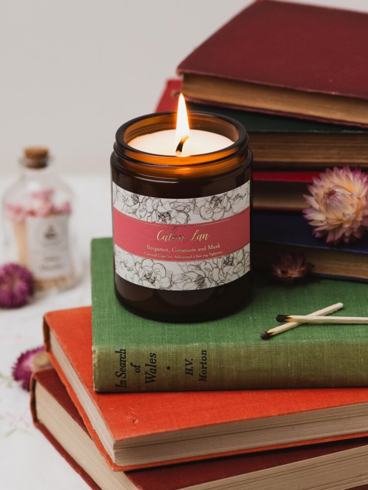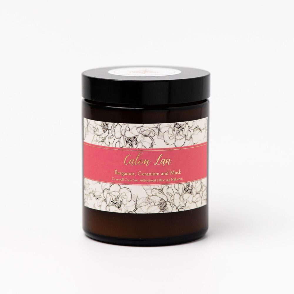 A beautiful Calon Lan amber glass candle fragranced with bergamot, geranium and musk to give this Welsh candle a calm heart. I don’t think you can be Welsh and not recognise the tune of Calon Lan. This candle is a tribute to music that means so much to me. I played it hundreds of times on the piano over the space of the two months in rehearsals for a school Eisteddfod too many years ago to count. I still can’t label a Calon Lan candle without singing.