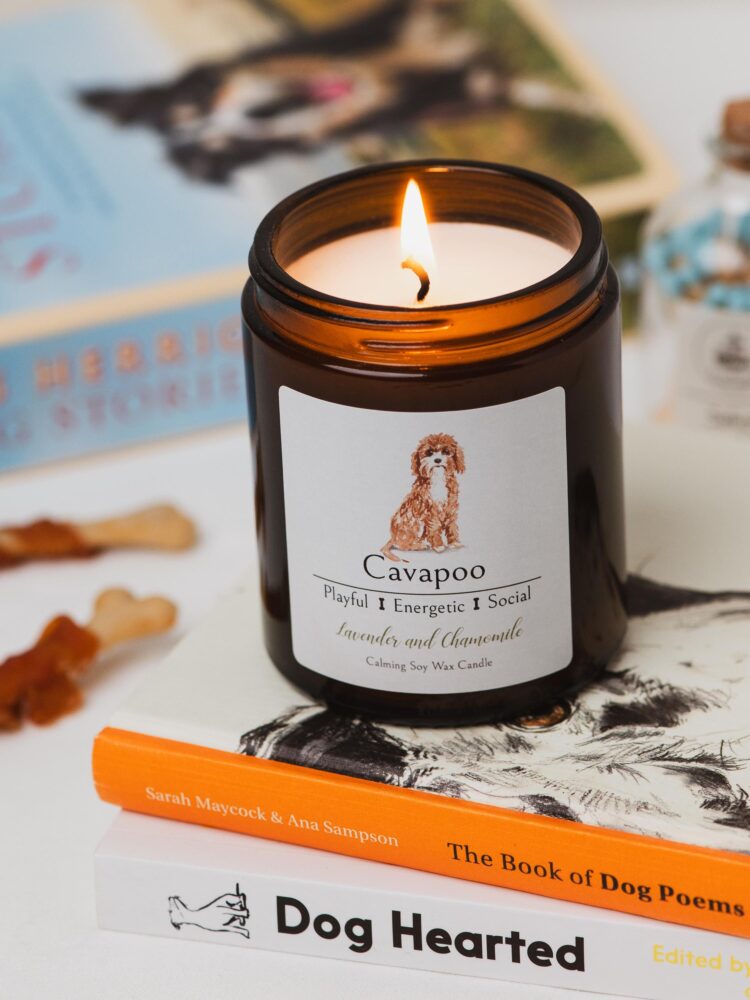 Canine genius but they take a lot of training because of it. A Cavapoo is great fun and a fabulous family pet. You can both relax with calming fragrance of lavender and chamomile. All of our candles are created using eco and vegan friendly soy wax and UK made oils. Lavender and chamomile and the two most dog friendly oils with the added benefit of their calming properties.