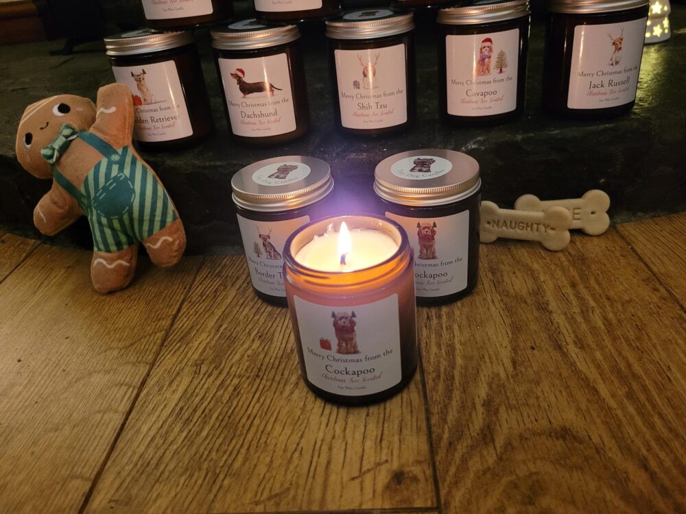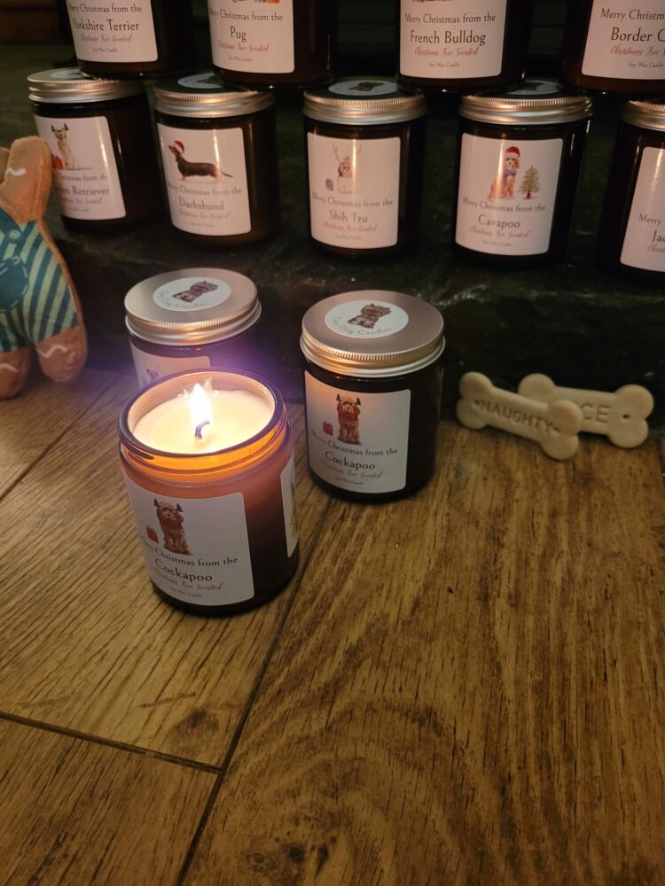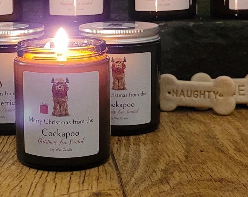 Cockapoo Christmas candle gift. Gift for dog lovers. Dog safe candle
