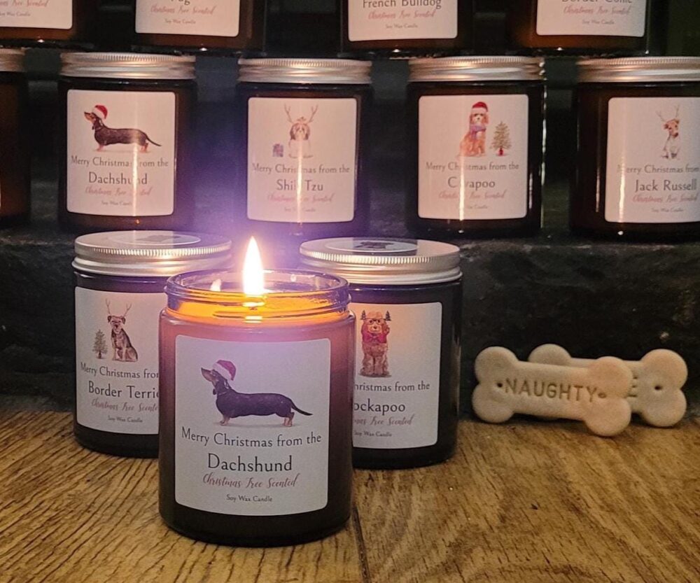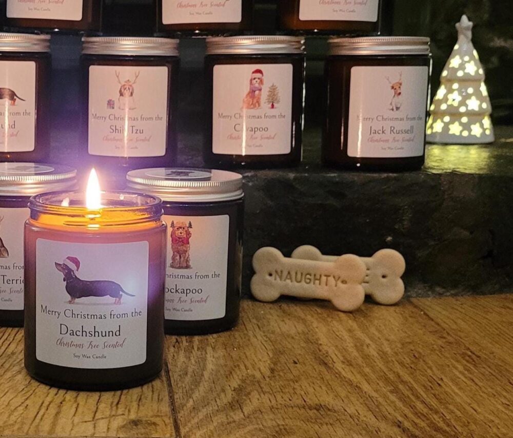 Dachshund Christmas candle gift. Gift for dog lovers. Dog safe candle