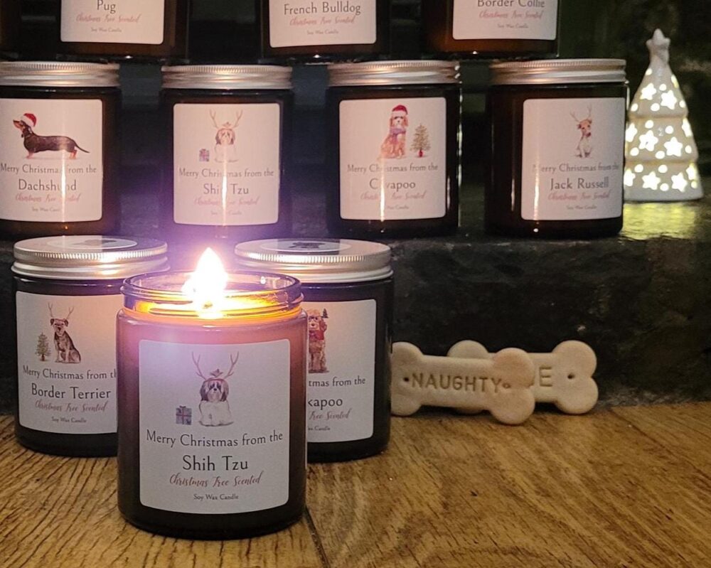 Shih Tzu Christmas candle gift. Gift for dog lovers. Dog safe candle