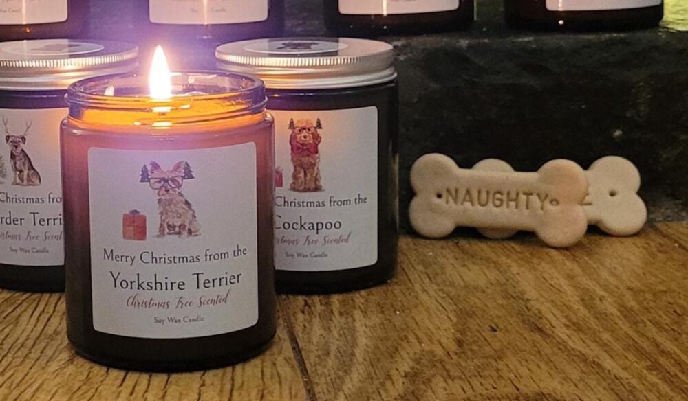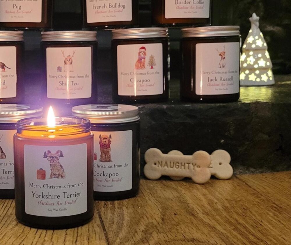 Yorkshire Terrier Christmas candle gift. Gift for dog lovers. Dog safe candle